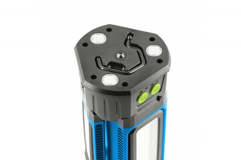Batteriescheinwerfer-Set mit Stativ. Eine omnidirektionale Arbeitsleuchte mit sehr guter Qualität des ausgestrahlten Lichts und hoher Widerstandsfähigkeit und Haltbarkeit. Dank des 360°-Ausleuchtungswinkels und der individuellen Einstellung des Winkels jedes der 3 Reflektoren bietet er große Möglichkeiten der Anpassung an die tatsächlichen Bedürfnisse und Bedingungen. Die hochwertigen LEDs leuchten mit weißem Licht, blenden nicht und sorgen für eine großflächige Ausleuchtung. Geeignet für die anspruchsvollsten Bedingungen - Bau, Ausbau, Renovierung, Werkstatt und Außenarbeiten. Die Lampe wird von einem leistungsstarken Akku betrieben, der einen Dauerbetrieb von bis zu 7 Stunden ermöglicht. Bei Bedarf lässt sie sich vom Stativ abnehmen und dank der starken Magnete oder des klappbaren Aufhängehakens überall befestigen. Ein 1/4"-Gewindeanschluss ermöglicht die Montage des Reflektors auf einem Stativ. Das Gehäuse mit der Schutzart IP54 ist absolut staubdicht und gewährleistet einen störungsfreien Betrieb in staubigen Umgebungen. Das Gehäuse schützt außerdem vor Spritzwasser aus allen Richtungen, so dass der Reflektor auch bei starkem Regen sicher verwendet werden kann. Der Reflektor kann andere Geräte über die USB-C-Buchse mit Strom versorgen und bei Bedarf als Powerbank fungieren. Das Stativ ist aus Aluminium gefertigt, wodurch es leicht und resistent gegen Korrosion und mechanische Beschädigungen ist, was eine lange Lebensdauer gewährleistet. Dank des faltbaren Designs lässt es sich auf eine praktische und kompakte Größe zusammenfalten und so einfach transportieren. Das Set kann in einer praktischen Tragetasche verpackt werden. >Zusammensetzung des Sets - Reflektor + Stativ + Tasche. |
