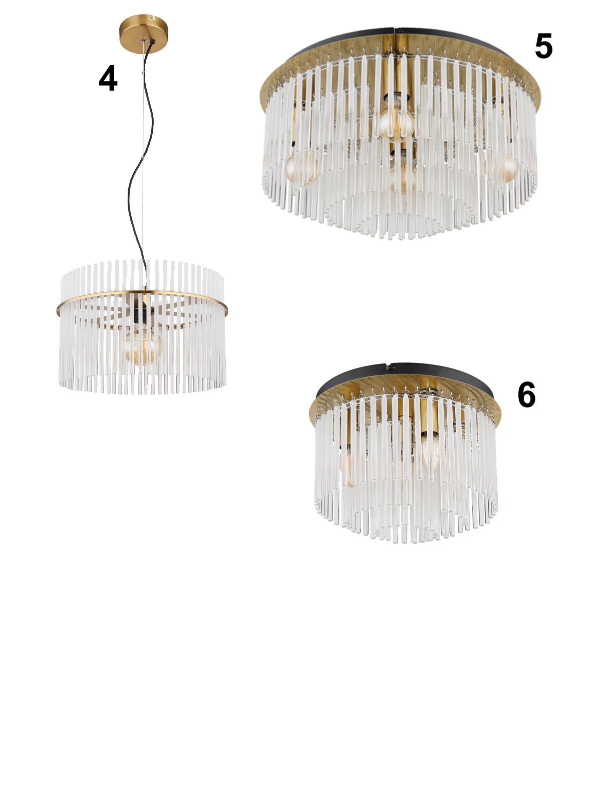 6. GL-15698DM  Stropní svítidlo, kov zlatá barva matná, černá, skleněné tyče bílé, průhledné, ø:320mm, V:230mm, bez žárovek 5x E14, max. 40W 230V detail výrobku