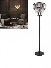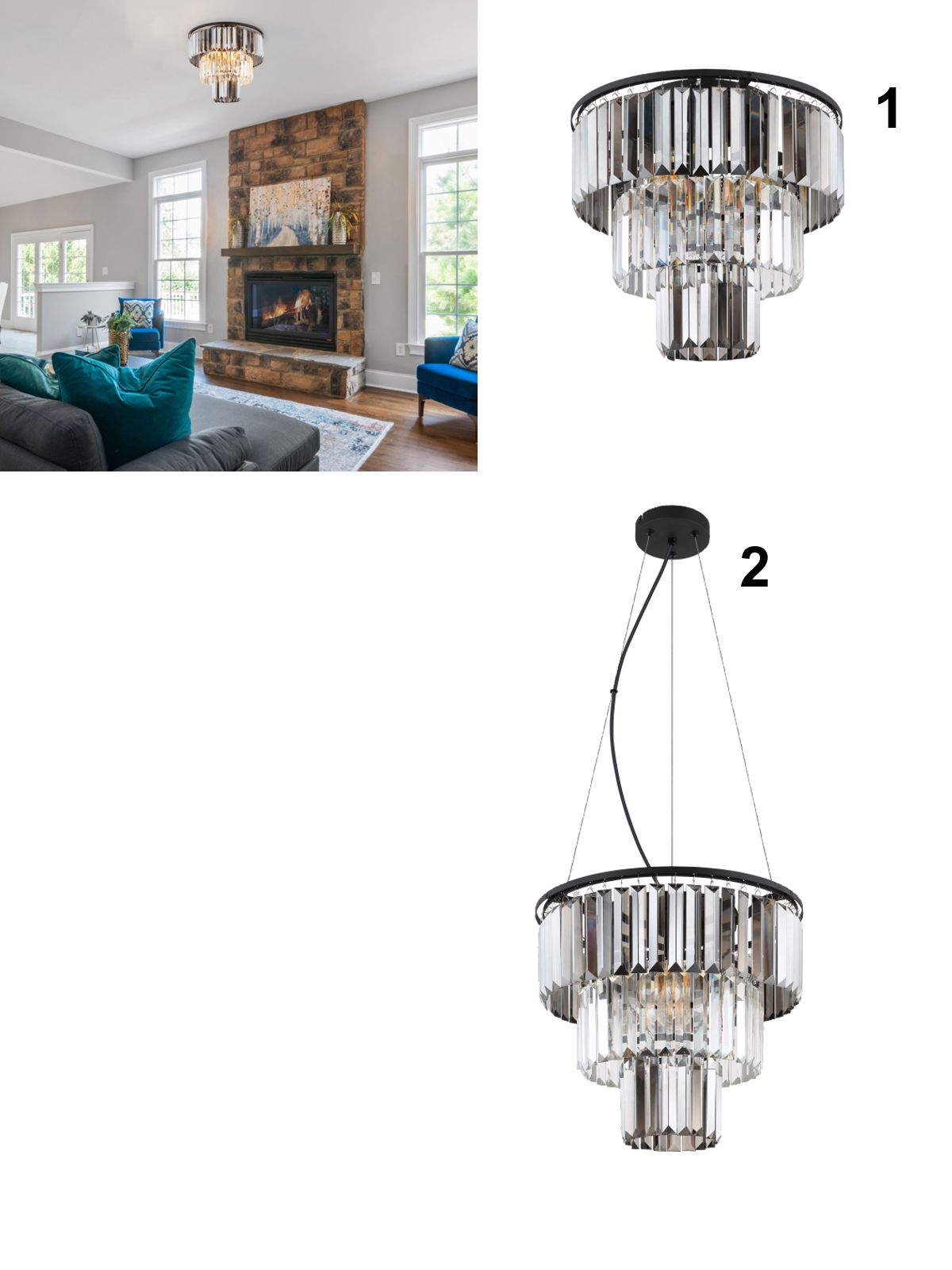 1. GL-15695D Stropní svítidlo, kov černý, skleněné křišťály kouřové, čiré, ø:400mm, V:330mm, bez žárovek 3xE27,max. 40W 230V detail výrobku