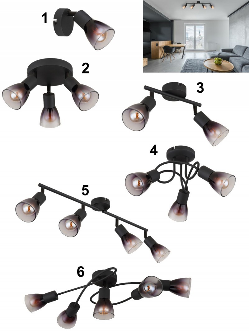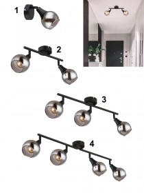 5. GL-54312-4 Stropní svítidlo, kov černý matný, sklo kouřové a průhledné, otočné/naklápěcí, Dx?xV:600x80x195mm, bez žárovek 4xE14,max. 25W 230V detail výrobku