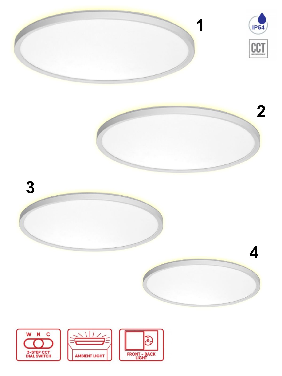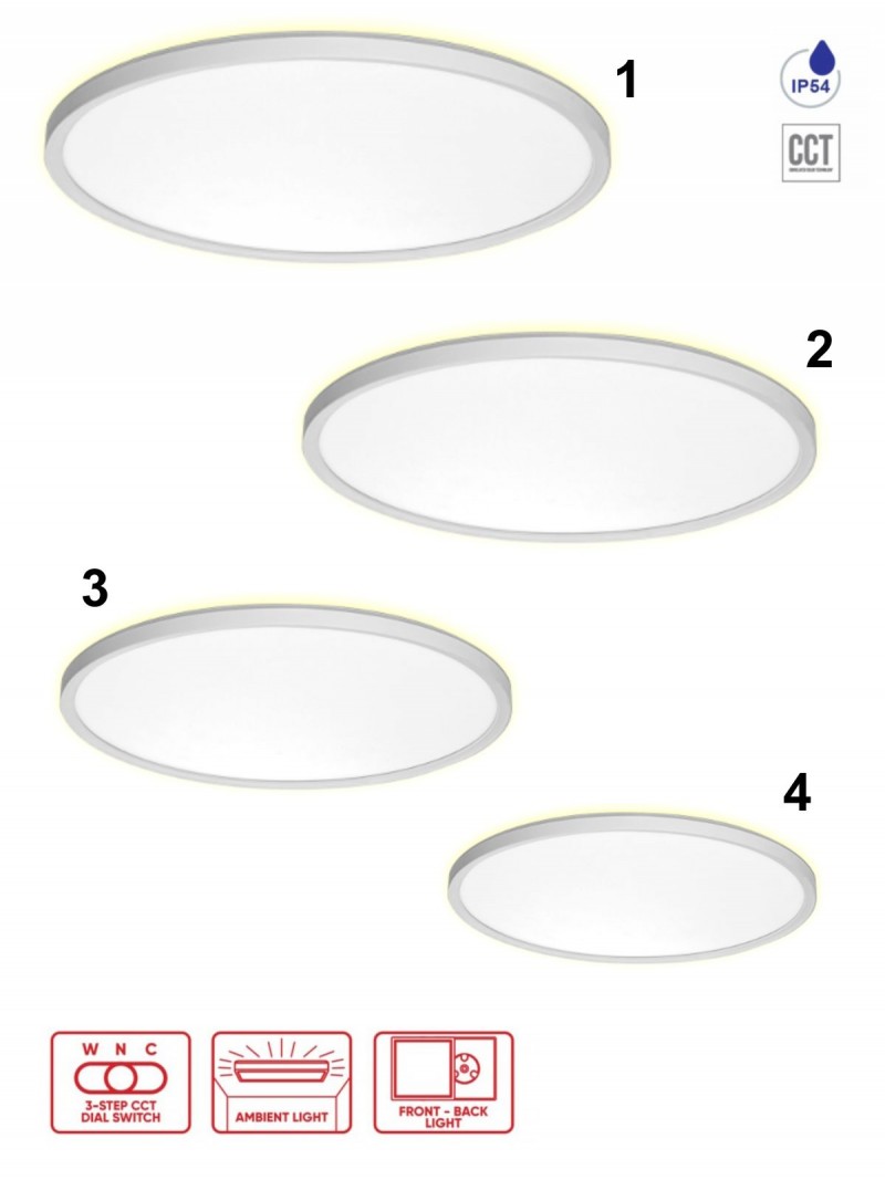 Moderne runde Deckenleuchte aus Kunststoff in elegantem Weiß. Dank IP54-Schutz ist es auch für feuchte Umgebungen wie Badezimmer, Toilette oder Terrasse geeignet. Beleuchtungstemperatureinstellung 3000-6000K.