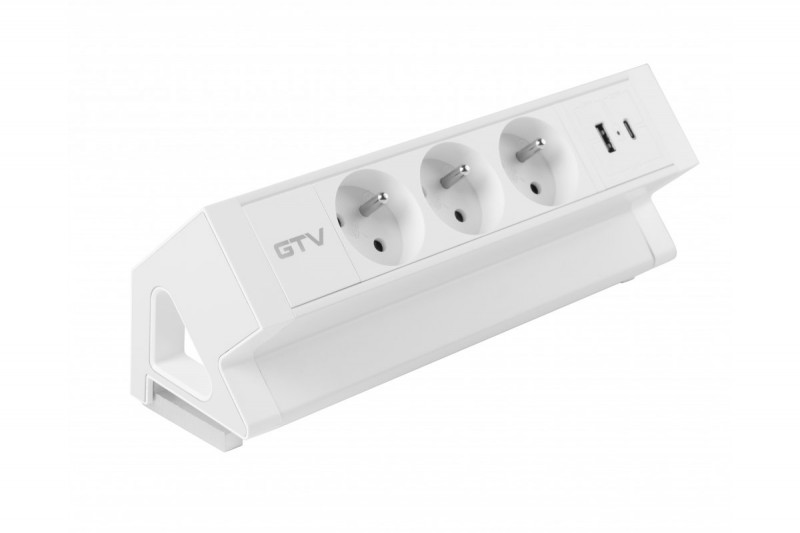 Nábytková zásuvka BASCO je praktickým řešením pro stoly a psací stoly doma i v práci. Usnadňuje využití prostoru a jeho univerzální design se hodí do mnoha uspořádání. Zásuvka se montuje na okraj desky stolu o tloušťce 5 až 36 mm – bez nutnosti vrtání. Je vybaven třemi francouzskými zásuvkami a porty USB A a C, což vám umožní připojit různá zařízení současně. Má kabel o délce 1,5 m a je k dispozici v klasické bílé barvě, díky čemuž diskrétně splyne s většinou pracovních prostor.