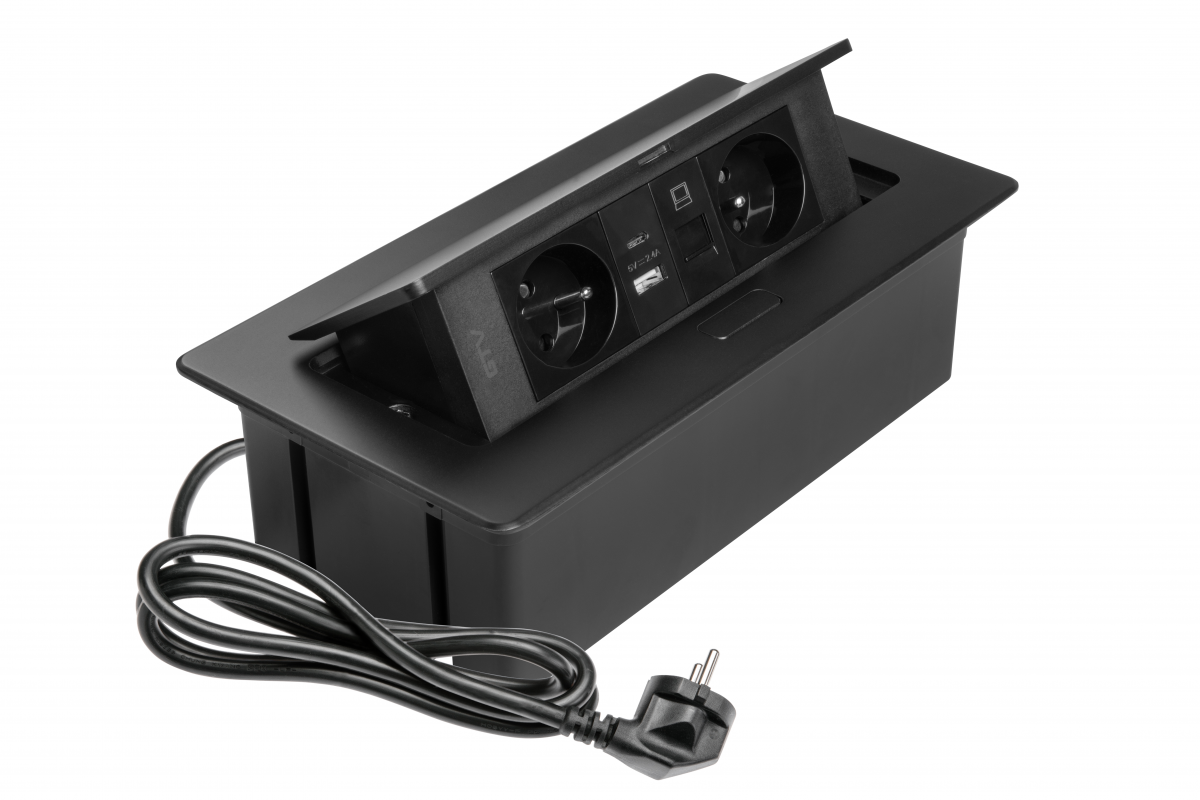 Funkční a ergonomické nábytkové zásuvky namontované v pracovní desce. Usnadňují udržování pořádku po práci. Esteticky zpracované zásuvky Multisoft jsou také prvkem psacího stolu, konferenčního stolu nebo kuchyňské desky. Jsou vybaveny elegantními a subtilními víčky, která chrání před rozlitím a špínou. Nástrčné hlavice Multisoft doplňují rodinu nástrčných hlavic SOFT. Vyznačují se multifunkčností díky různým portům. Vybaveno 2x uzemněnou zásuvkou Zásuvka zapuštěná do desky stolu Snadná instalace USB A+C, RJ45 zásuvka Barvy: Černá Napájecí kabel 1,5 m |