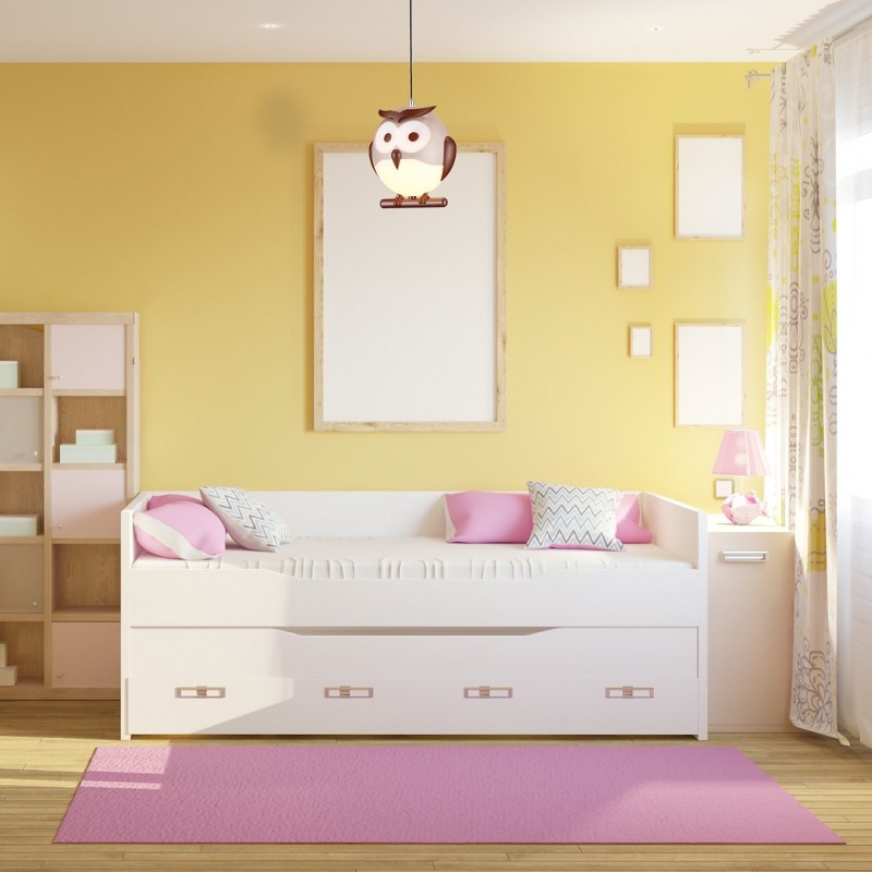 Model OWL 243 je originální závěsná lampa, která se skvěle hodí do dětského pokoje. Kulové svítidlo ve tvaru sovy sedící na větvi potěší malé milovníky zvířat. Neutrální odstíny hnědé a béžové se budou skvěle hodit k doplňkům v podobných tónech. Lampu lze kombinovat s dalšími modely z kolekce OWL.
