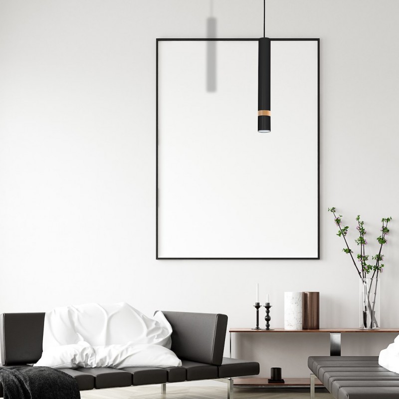 - Jednoduché závěsné svítidlo, černo-dřevěné MLP6305