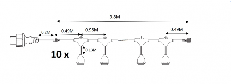 Nabízený věnec značky Eko-Light je dlouhý 10 metrů. Jeho šířka je však 35 mm a výška 60 mm. Tento model váží 2 kg. Věnec je vybaven celkem 10 světelnými body. Každý z nich je vybaven paticí se závitem typu E27. Každý z nich je rovněž vodotěsný. Za zmínku stojí, že girlanda je popsána stupněm krytí IP44. To znamená, že tento model je kromě vlhkosti chráněn také proti prachu. Věnec je vyroben z kvalitního plastu v univerzální černé barvě. Tento model má také zásuvku pro připojení další girlandy. Světelné zdroje nejsou součástí balení.