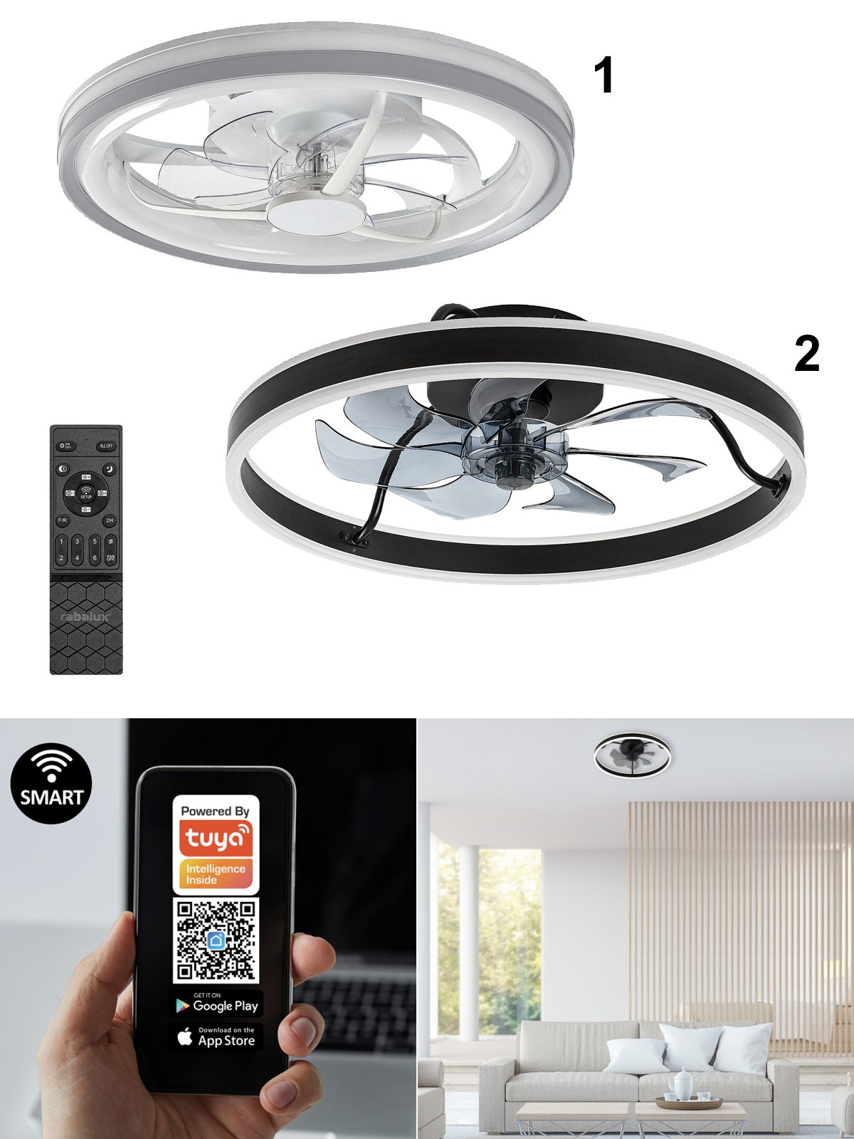 Eine moderne und praktische Leuchte im Ventilator verfügt über ein integriertes LED-Leuchtmittel, das für einen energieeffizienten Betrieb und eine lange Lebensdauer sorgt. Die Lampe wird mit einer Fernbedienung geliefert und kann auch per WLAN über ein Smartphone oder Tablet gesteuert werden. Es verfügt über viele Funktionen wie Dimmen, Speicherfunktion für die letzte Einstellung, Timer, Nachtlicht und andere. Die Lüftergeschwindigkeit ist einstellbar und seine Leistung reicht für einen 12 m² großen Raum. |
