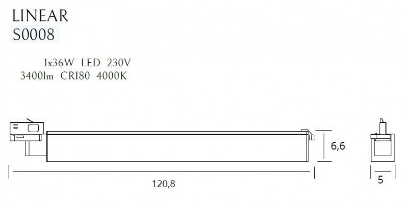 Příkon: 1 x 36W LED 230V, 3400 LM, CRI80 4000K . Š: 120,8 cm, D: 5,0 cm, V: 6,6 cm Povrchová úprava/detailní provedení: černá/černá Materiál/Materiál: kov, akryl Včetně LED diody / LED dioda 4000K Úhel svícení/úhel vyzařování: 100° Třífázový adaptér/3fázový adaptér |