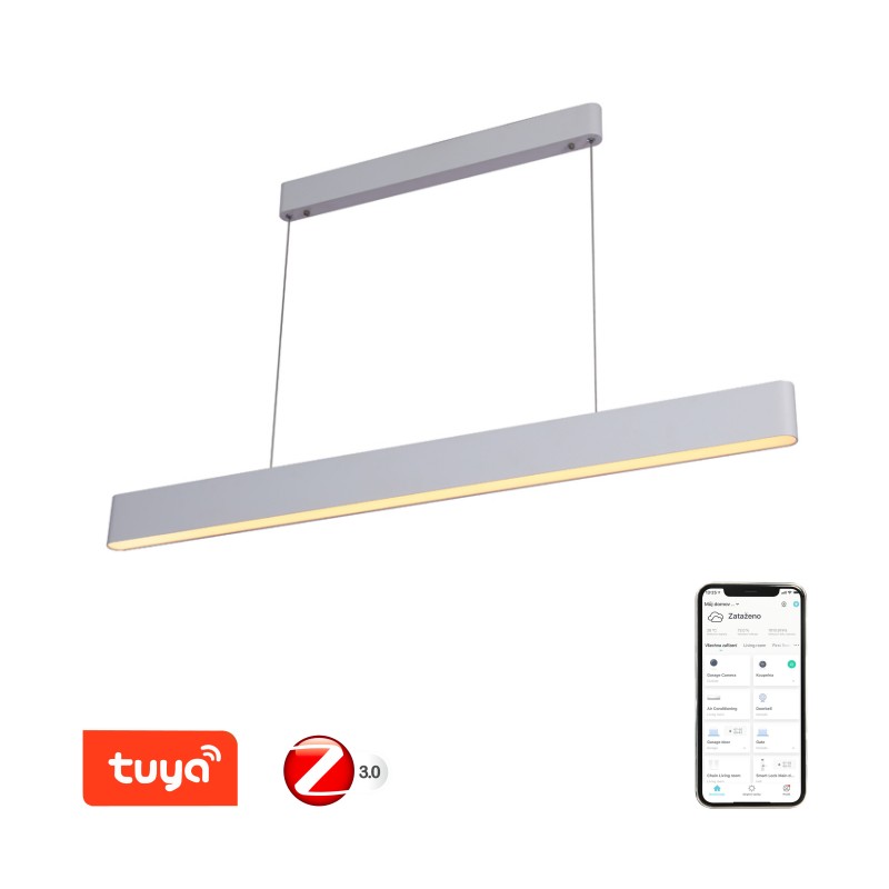 Smart závěsné svítidlo MILANO ve bílé matné barvě je nejen designový doplněk interiéru, ale také splňuje funkci praktického svítidla a náladového osvětlení, přímé světlo svítí dolů v odstínech bílé barvy, pro správné osvětlení pracovní plochy, ostrůvku či jídelního stolu, nepřímé osvětlení směrem vzhůru v širokém barevném spektru (RGB), právě správně zvolenou barvou vytvoříte útulnou atmosféru a přispějete k domácí pohodě.