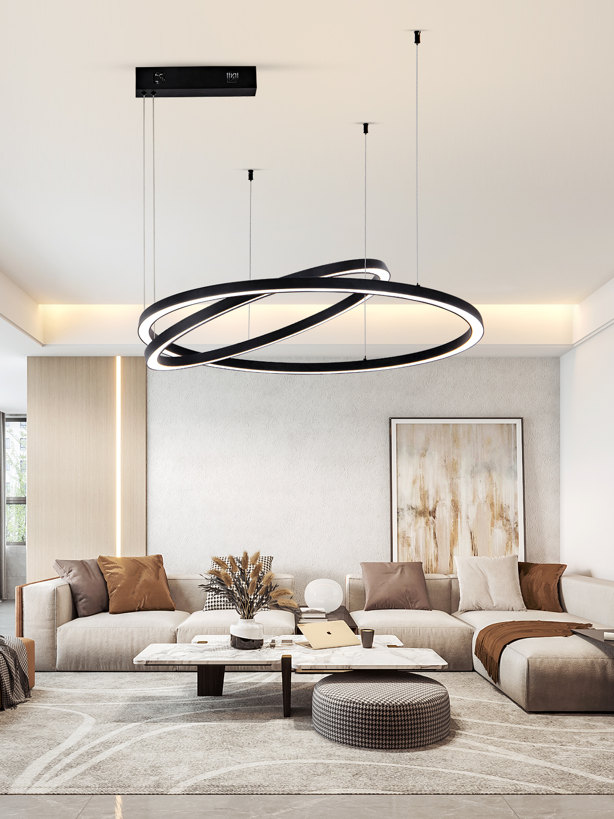 Nová kolekce závěsných lustrů FINO splňuje požadavky náročného uživatele, dokonalé tenké kruhy, vysoká svítivost,designové řešení závěsného systému. Osvětlení FINO nevyniká pouze svým designem, ale také rozmanitou funkčností. Stačí jedno kliknutí na mobilním telefonu a změníte intenzitu či tepelnou zabarvenost, kdykoliv kliknutím změníte funkčnost z cenrálního osvětlení na náladové přisvícení.
