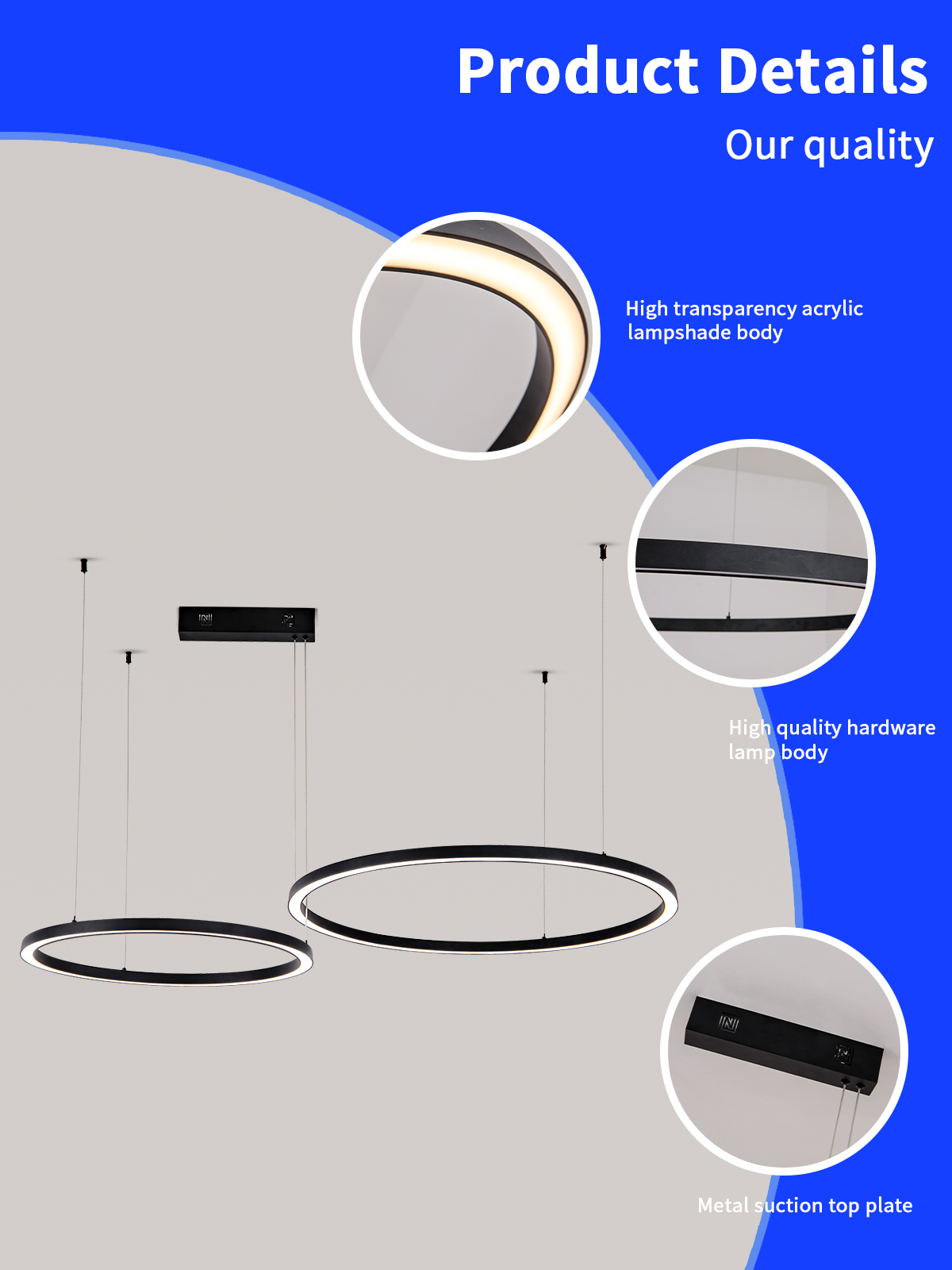 Pro konečné nastavení výšky svítidla stačí upravit délku závěsných lanek.