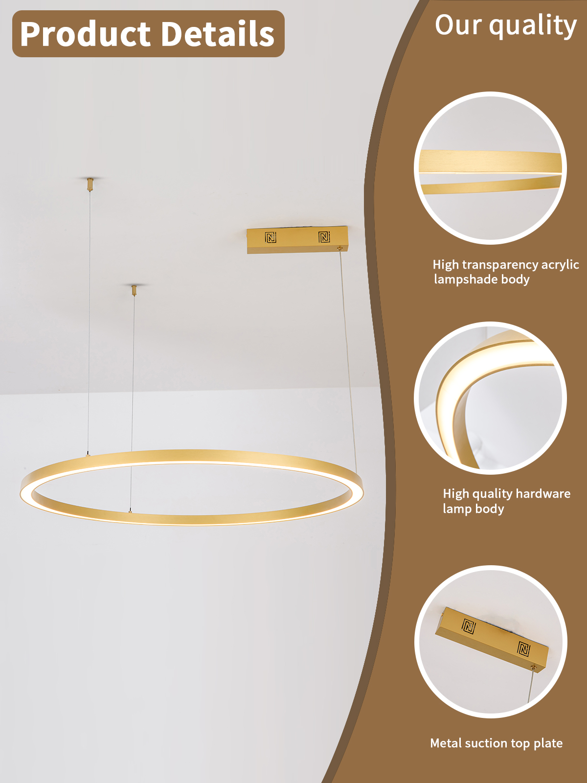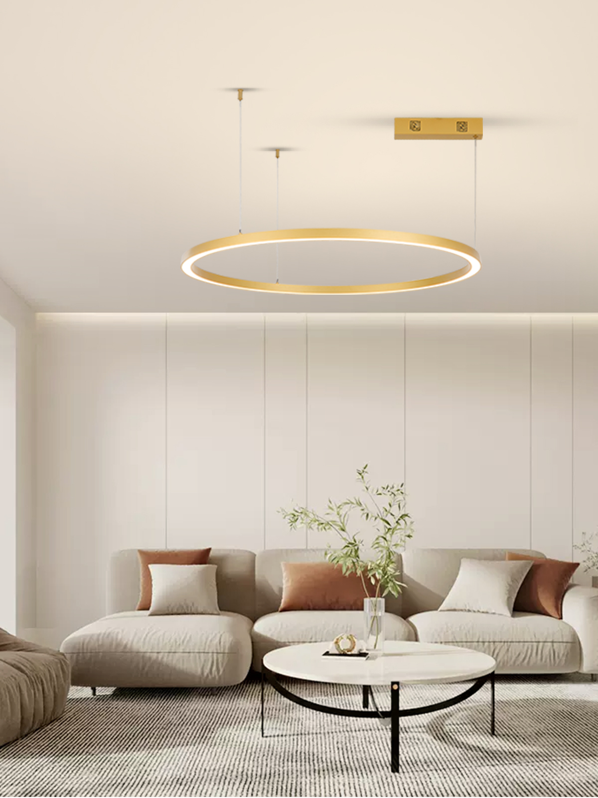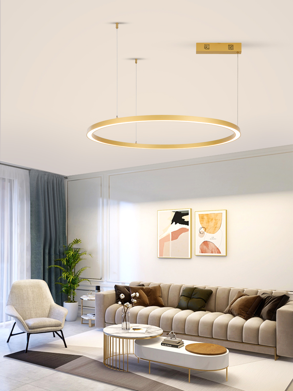Technické parametry: Protokol: Zigbee 3.0 Materiál: kov, plast Barva svítidla: zlatá Rozměry: průměr 80cm Délka závěsu: max 150cm Barva světla: CCT 2700-6500K Příkon: 60W Světelný tok: 4200l Stmívatelný : ano Doba svícení: 50 000 hod Vstupní napětí zdroje: (AC 220-230V 50/60Hz) CRI(Ra) Index podání barev: >86 (denní světlo má hodnotu Ra 100) Záruční lhůta: 3 roky