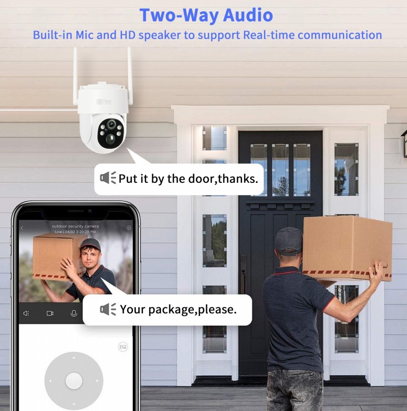 Integrovaný reproduktor a mikrofon umožňují oboustrannou komunikaci, takže můžete snadno reagovat na dění u sledovaného objektu. Kamera disponuje PIR detekcí pohybu v úhlu 120° a automatickým nočním režimem s dosahem až 15 metrů, což zajišťuje spolehlivé monitorování i za tmy.