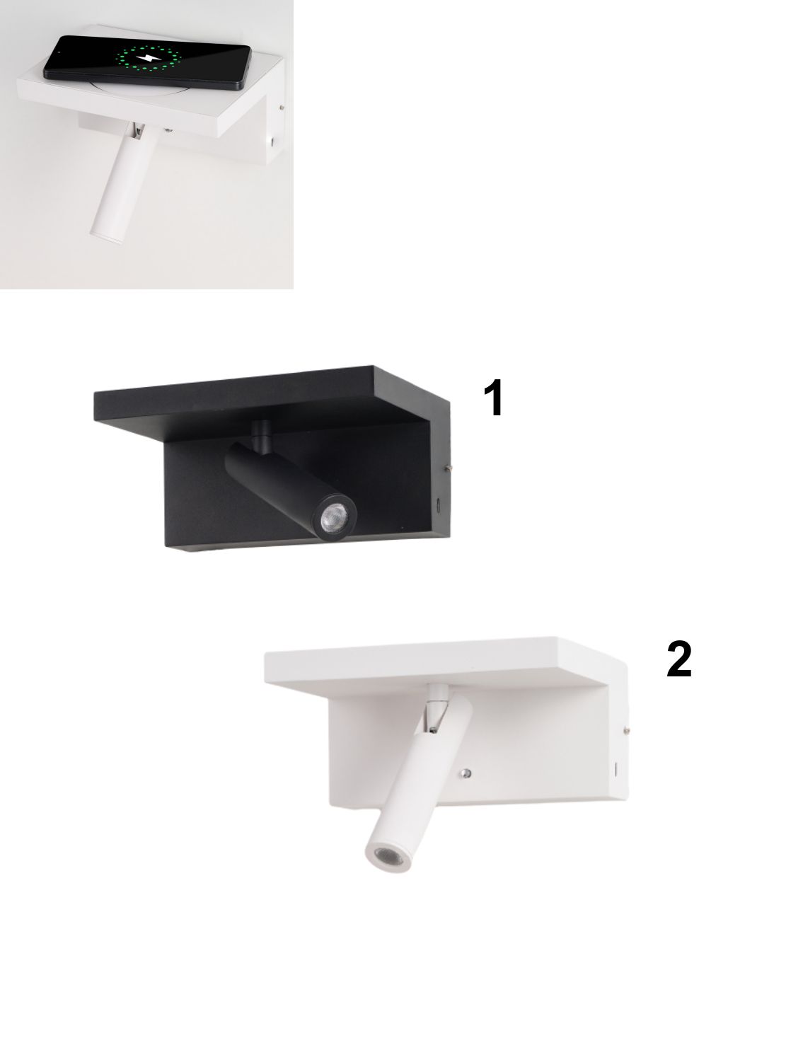 Moderne Wandleuchte, geeignet für Schlafzimmer, Büros oder Studentenzimmer. Sie ist aus Aluminium gefertigt und leuchtet in warmweißem Licht, das eine angenehme Atmosphäre schafft. Zudem verfügt sie über eine kabellose Ladefunktion für Smartphones.