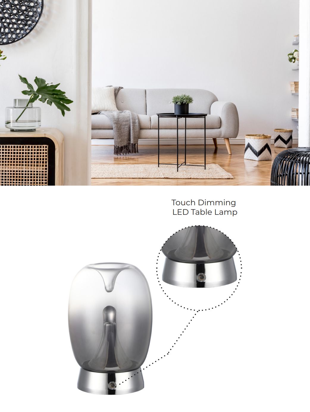 Diese moderne Tischleuchte Pamela ergänzt die Lampenfamilie Pamela perfekt. Sie ist aus Aluminium und Glas gefertigt und in Schwarz und Rauchgrau erhältlich. Die Leuchte ist dimmbar und die Farbtemperatur lässt sich zwischen 3000 K und 4000 K einstellen. Die Akkulaufzeit beträgt 7–10 Stunden.