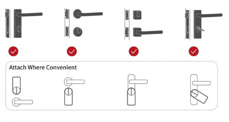 Dveřní zámek Barva: šedá Baterie: 4xAA 1,5V baterie (nejsou součástí dodávky) Výdrž na baterii: až 300 dnů Protokol: BLE Frekvence: 2400MHz~2483.5MHz Maximální RF výstupní výkon: BLE: 4dBm Stupeň krytí: IP20 Pracovní teplota: -10 ~ + 55 °C Provozní vlhkost: max 85% RH (bez kondenzace) Rozměr: 13,6 x 6,3 x 4,8 cm Váha bez baterií: 216g
