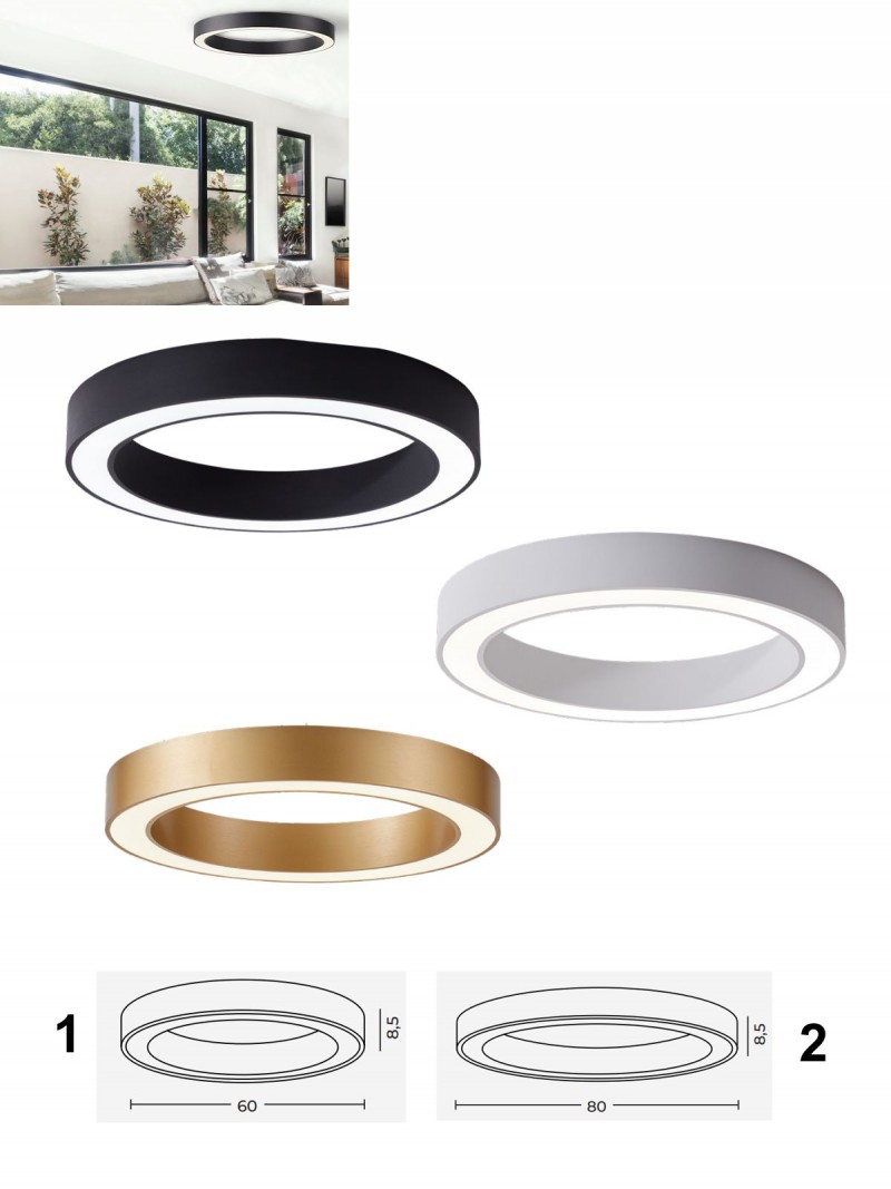 Elegante Deckenleuchte aus Aluminium und Kunststoff. Dank der integrierten Fernbedienung lässt sich die Helligkeit dimmen und die Farbtemperatur zwischen 3000 und 6500 K einstellen. Diese Leuchte passt perfekt in moderne Interieurs, insbesondere in Wohnzimmer, aber auch in Flure oder Schlafzimmer. Sie ist in verschiedenen Farben erhältlich, die sich nach Belieben kombinieren lassen und so für ein beeindruckendes Ambiente sorgen. |