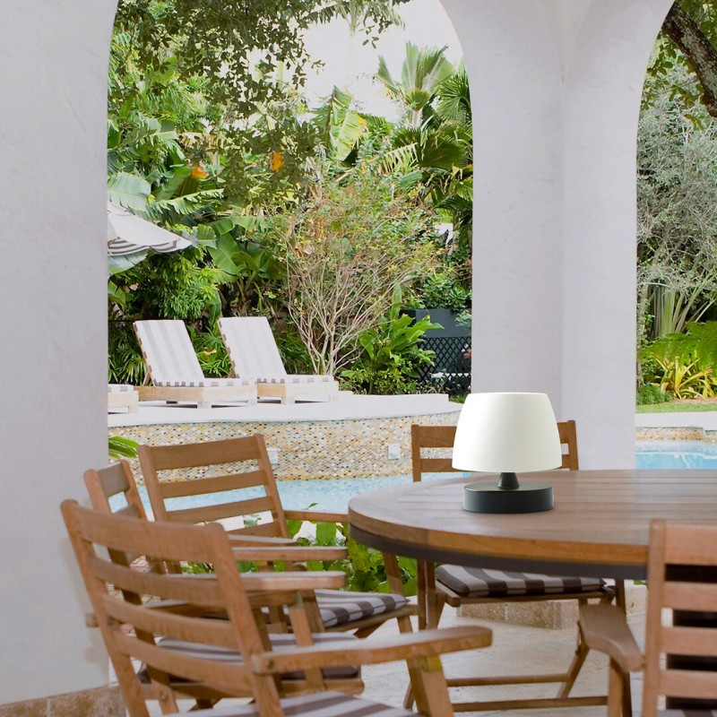 Venkovní stolní lampa Odera v moderním stylu je skvělou volbou pro příjemné večeře na terase a letní večerní rozhovory. Černý model s bílým stínítkem připomínajícím deštník a masivní kulatou základnou je celý vyroben z plastu. Odera má zabudovaný LED světelný zdroj energetické třídy G o výkonu 3 W, svítivostí 140 lumenů se stínítkem, 360 lumenů bez stínítka as teplotou barvy světla 3000 K. Zdroj teplého bílého světla má životnost 25 000 hodin. Svítilnu lze stmívat ve třech stupních, tj. jeho jas lze nastavit dotykovým spínačem. Baterie má napětí 3,7 V a kapacitu 2000 mAh. Rozměry modelu, který lze nabíjet pomocí USB kabelu, jsou tyto: výška 160 mm, průměr 150 mm, instalační průměr 125 mm. Délka USB kabelu je 500 mm a doba nabíjení je 7 hodin. Venkovní svítidlo Odera má krytí IP44, které zaručuje ochranu proti vniknutí předmětů o průměru až 1 mm a proti stříkající vodě z jakéhokoli směru. |
