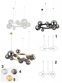 Gestalten Sie eine originelle Pendelleuchte für Ihr Interieur. Der Metallfuß ist separat in drei Farbkombinationen erhältlich, und Sie können einen kugelförmigen Glasschirm wählen. Der Glasschirm ist in drei Größen und drei Farben verfügbar und passt perfekt zu Ihrer Einrichtung.