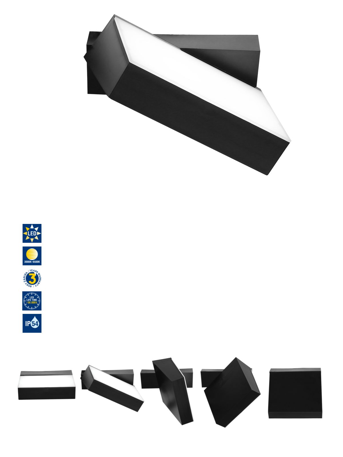 Flip CCT ist eine moderne Gartenwandleuchte. Die LED-Lichtquelle ist fest verbaut und nicht austauschbar. Die Leuchte verfügt jedoch über einen CCT-Schalter, mit dem die Farbtemperatur auf 3000 K, 4000 K oder 6000 K eingestellt werden kann. Die Leuchte ist um 360° drehbar und besteht aus schwarzem Kunststoff. |