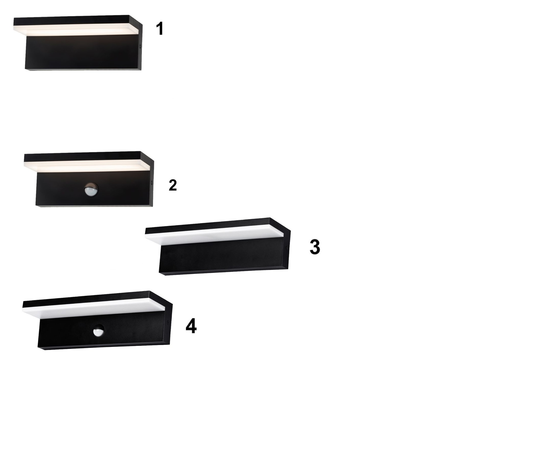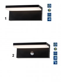 Moderne Außenwandleuchten. Dank des Schalters lässt sich die Farbtemperatur auf 3000 K, 4000 K oder 6000 K einstellen. Hoher Schutz gegen Feuchtigkeit und Staub gemäß IP54. Wenn Sie eine wirklich moderne Leuchte suchen, ist die Elon die richtige Wahl. Optional ist auch eine Variante mit Sensor erhältlich. |