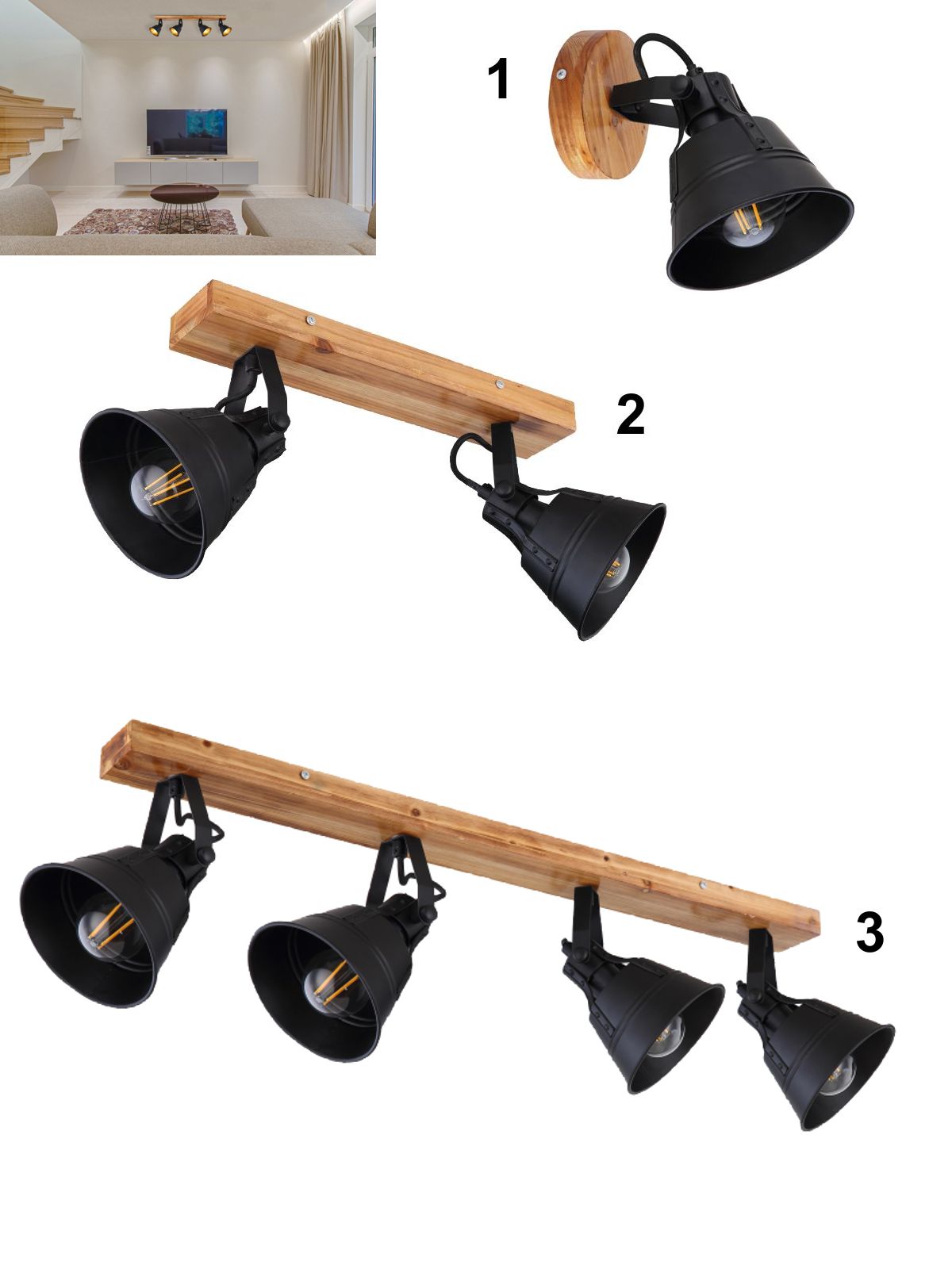 3. GL-15466S-4 Stropní svítidlo, dřevo dub, kov černý, uvnitř zlatý patinovaný, LxV: 82x24cm, H:18cm, bez žárovek 4xE27, max. 60W 230V detail výrobku