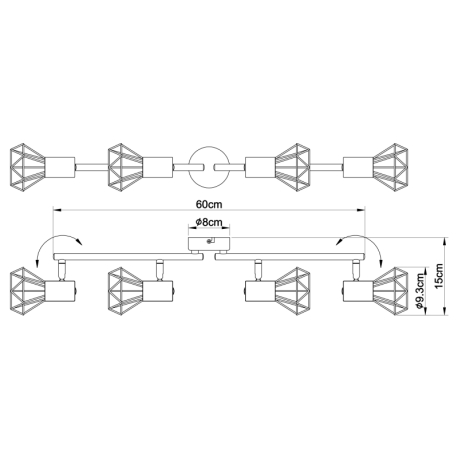 GL-54802-4 Stropní svítidlo, chrom, sklo čiré, nastavitelné, DxV: 60x15cm, bez žárovek 4xE14, max. 40W 230V. -