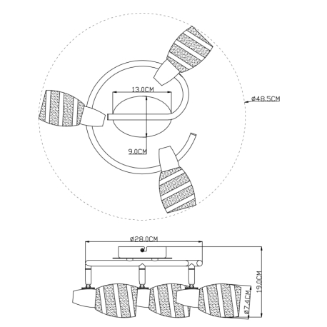 GL-54985-3 Stropní svítidlo, chrom, satinované sklo, Ø28cm, V:19cm, bez žárovek 3xE14, max. 40W 230V. -