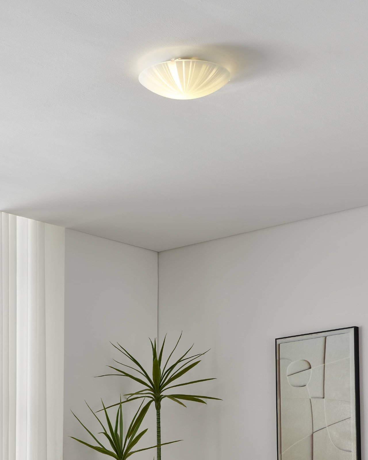 Runde Mars-Lampen haben einen Metallsockel und weißes Satinglas. Sie sind sowohl für die Decke als auch für die Wand geeignet. |