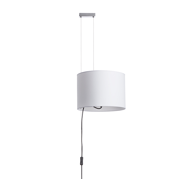 Hängeleuchte mit Steckseil, geeignet für Orte ohne Stromversorgung von der Decke. Der Schalter befindet sich am Netzkabel. |