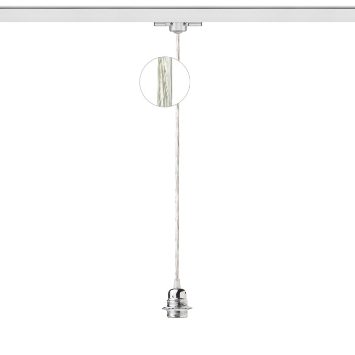 Textilkabel mit Metallhülse in verschiedenen Farbkombinationen, endend mit einem Adapter zum Einhängen in eine Dreiringleiste. |
