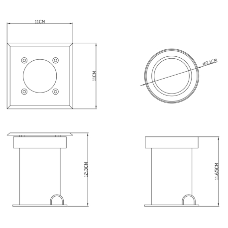GL-31101 Venkovní svítidlo, nerezová ocel, sklo průhledné, zatížitelnost až 2000 kg, IP65, Dx?xV: 11x11x11,5 cm, Ø výřezu 93mm, bez žárovky 1xGU10, max. 40W 230V. -