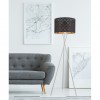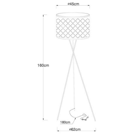 GL-15229S1 Stojací svítidlo, kov nikl matný, textil černý a zlatý, stínidlo s ozdobným děrováním, kabel 1,8m, vypínač, Ø62cm, V:158cm, bez žárovky 1xE27, max. 60W 230V. -