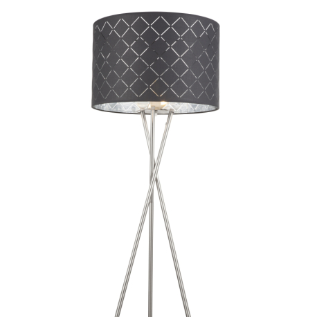 GL-15228S1 Stojanové svítidlo, kov nikl matný, textil šedý, stínidlo s dekorativním děrováním, kabel 1,8m, vypínač, Ø62cm, V:160cm, bez žárovky 1xE27, max. 60W 230V. -