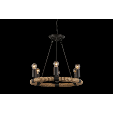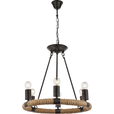 GL-69029-6 Závěsné svítidlo, kov, černá, hnědé konopné lano, Ø50cm, V:126cm, bez žárovek 6xE27, max. 40W 230V. -
