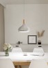 Moderne Sabinar-Pendelleuchten bestehen aus Stahl in weißer Farbe mit einem Holzelement in brauner Farbe. Sie haben ein schlichtes, klares Design und passen in jedes Interieur. |