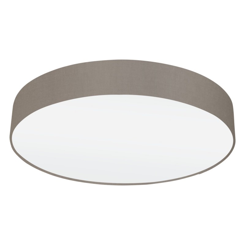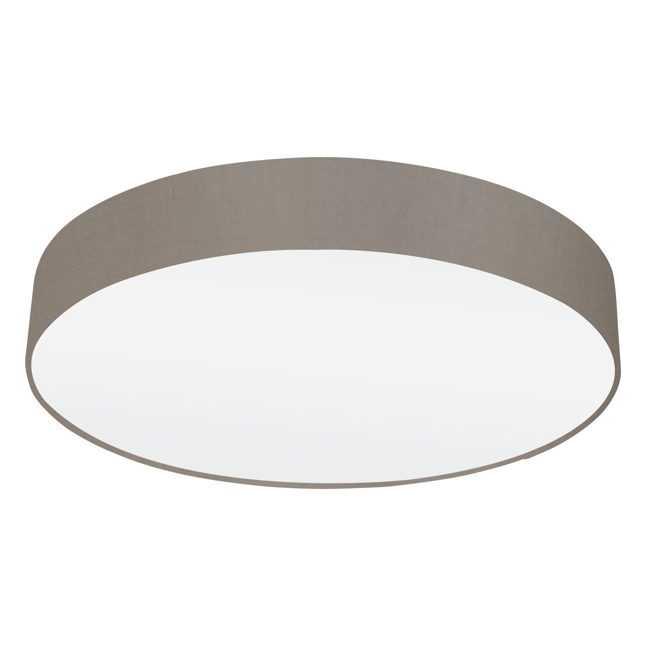 Runde, schlichte, aber sehr moderne und geschmackvolle Deckenleuchten aus Stahl in der Farbe Weiß und Textil in der Farbe Taupe (Graubraun). Es passt in alle modernen Innenräume und wird dort eine geschmackvolle Ergänzung sein. |