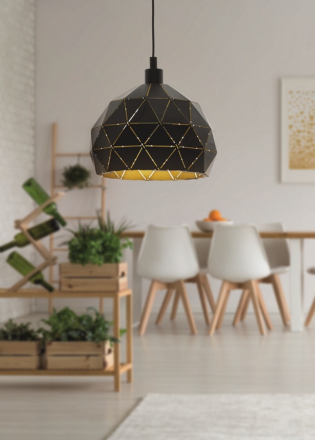 Sehr interessante Lampen aus Stahl in schwarzer Farbe, die Innenseite des Lampenschirms ist goldfarben. Sie eignen sich besonders für Esszimmer und Küchen über der Kücheninsel, werden aber auch im Wohnzimmer ein interessantes Element sein. |