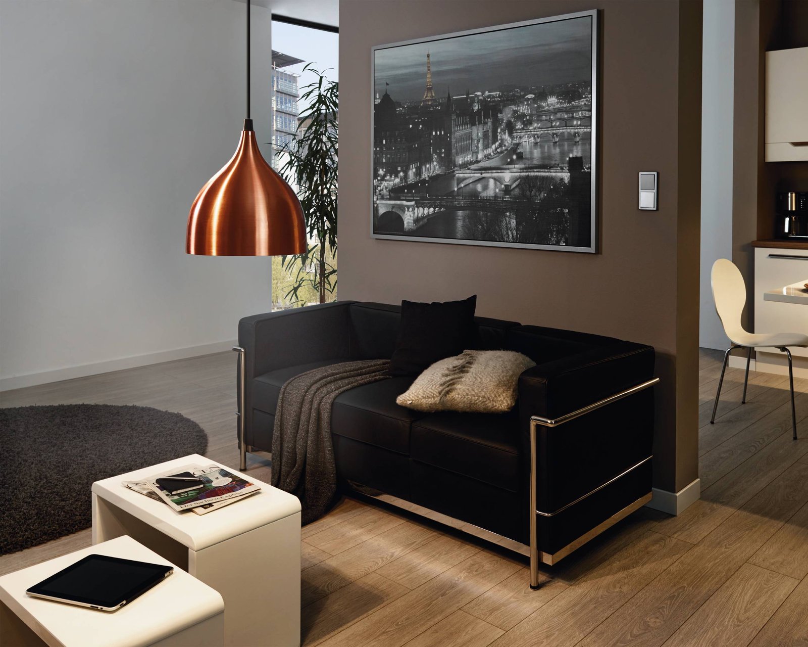 Moderne Kronleuchter aus Stahl. Es passt perfekt in die Küche über den Küchentisch oder die Kücheninsel, aber auch als interessantes Element im Wohnzimmer.
