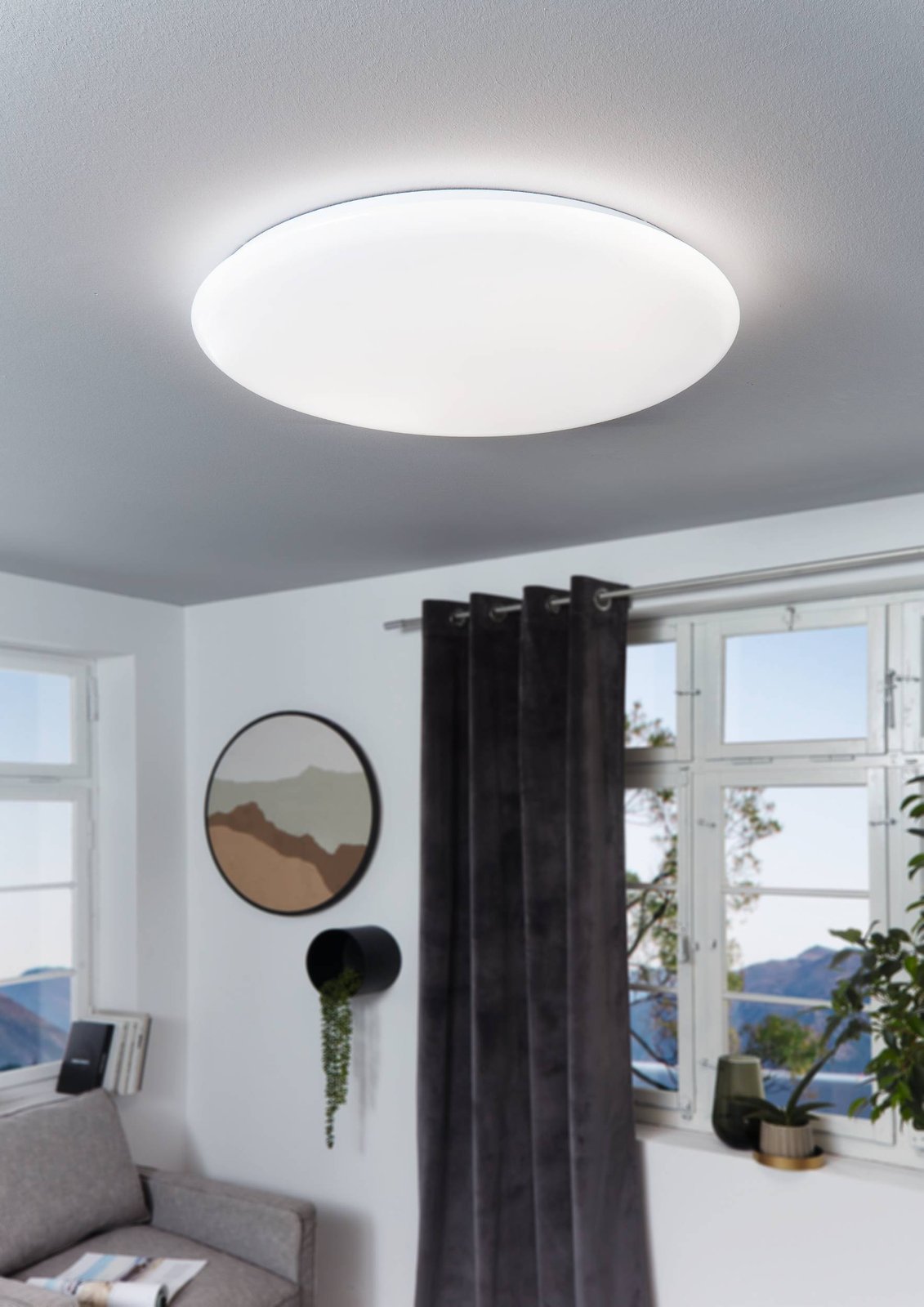 Runde Deckenleuchten in Weiß, aus Stahl und Kunststoff. Sie werden mit einer Fernbedienung geliefert, mit der Sie die Lampe dimmen und die Temperatur der Lichtfarbe ändern können. Dank ihrer Einfachheit können wir sie in allen Wohnräumen installieren, wie zum Beispiel Wohnzimmer, Schlafzimmer, Flur oder Flur.