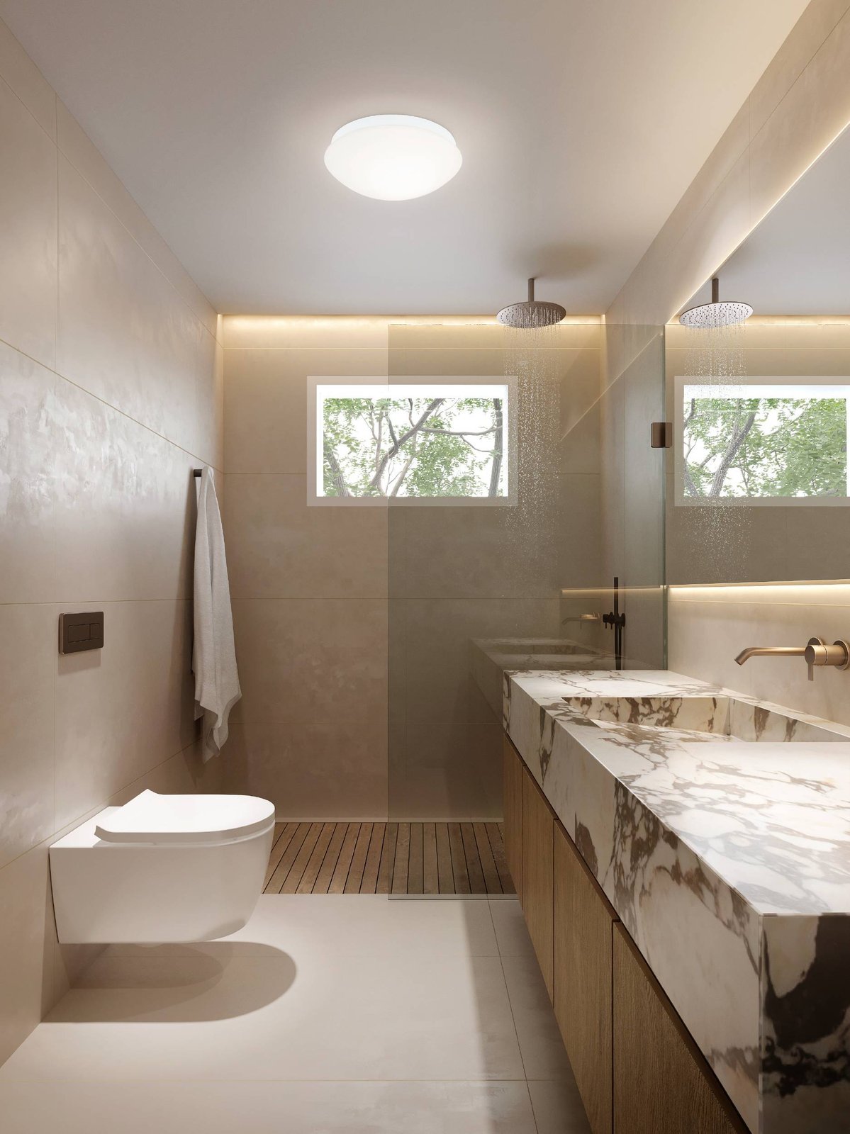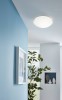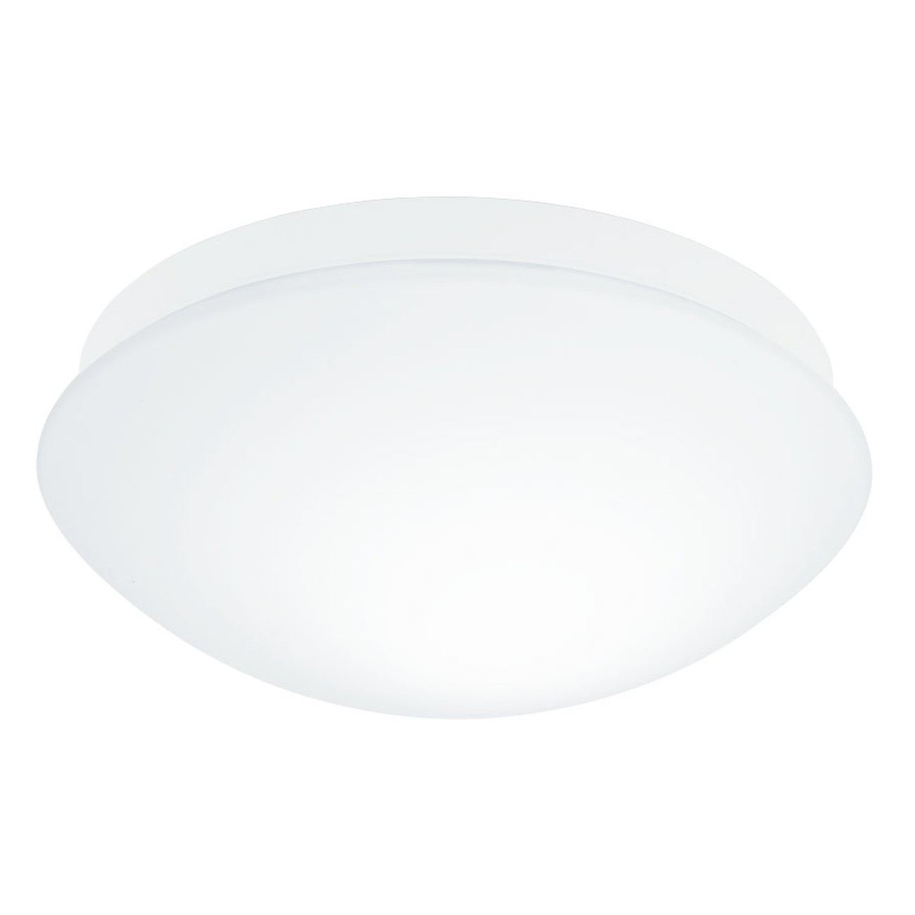 Badezimmer-Deckenleuchte aus Kunststoff und Glas in weißer Farbe. Die Lampe verfügt über einen eingebauten Bewegungssensor, der auf eine Leuchtdauer von 30 Sekunden eingestellt werden kann. innerhalb von 18 Minuten.