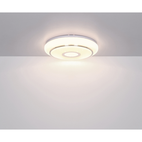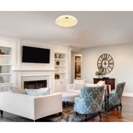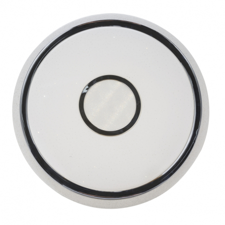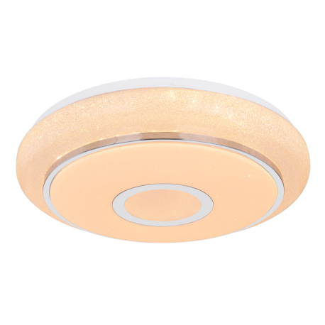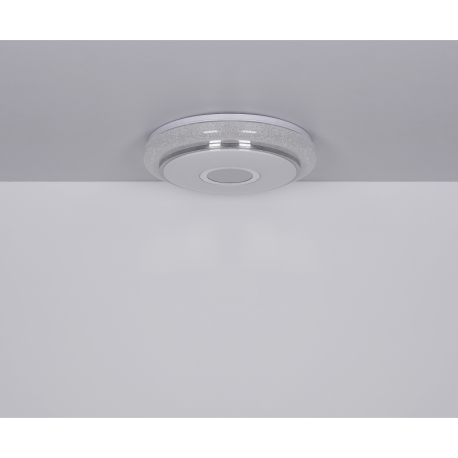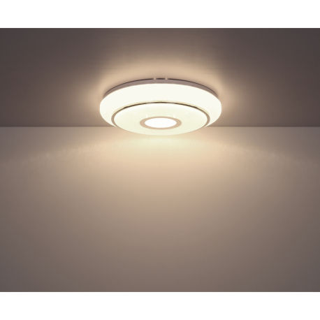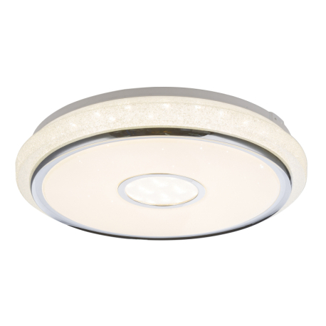 GL-48389-40  Stropní svítidlo, plast bílý chrom, plast satinovaný, křišťál akrylový průhledný, třpytivý efekt, 200-3100lm, změna barvy světla 3000-6500K, paměť,stmívatelné, dál. ovládání, fixace barev, včetně 2 x AAA, Ø50cm, V:10cm, včetně 1xLED 40W 230V, 3100lm. -