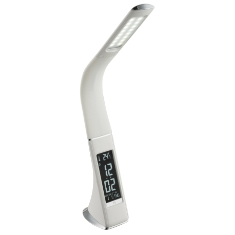 GL-58333  Stolní svítidlo, plast, bílá, chrom, s hodinami a budíkem, flexi, stmívatelné, fixace barev, dotykový stmívač, Dx?xV: 25x7x51cm, 1xLED 6,5W 230V, 260lm, změna barvy světla, 3000-4500-5800K -