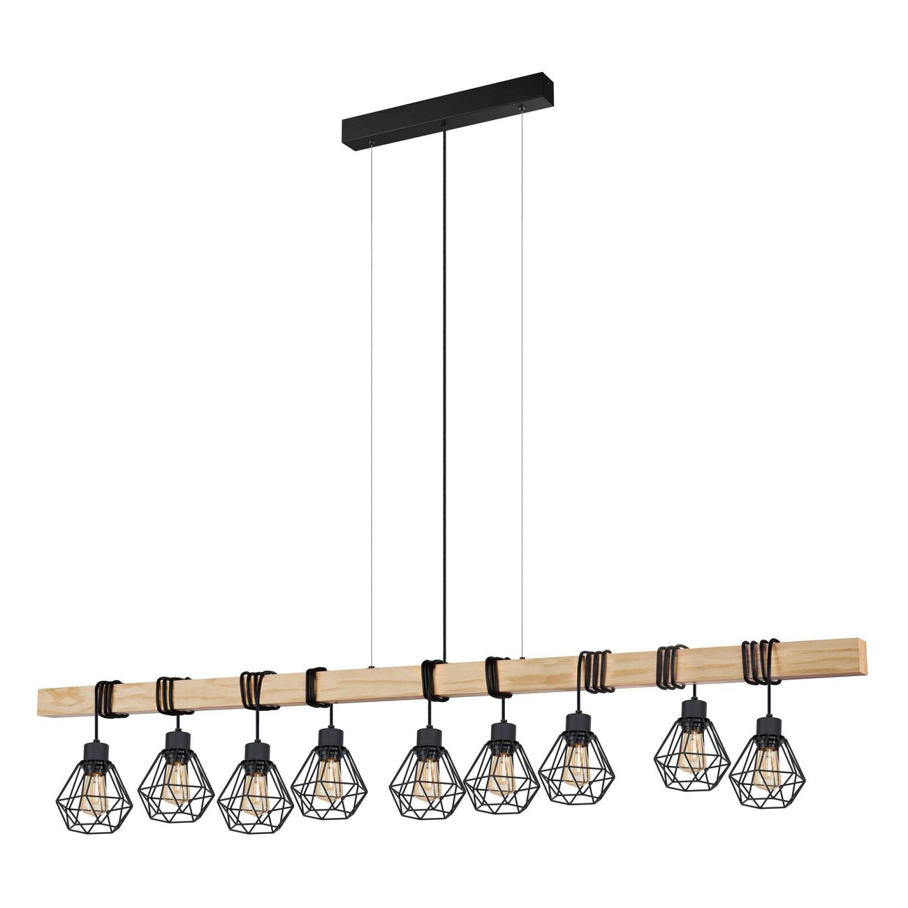Ein Set beliebter Townshend-Lampen aus schwarzem Metall und Holz in einer natürlichen Farbe. Die Lampen können auch mit smarten LED-Leuchtmitteln ausgestattet werden und so die Intensität und Farbigkeit der Beleuchtung verändern. |