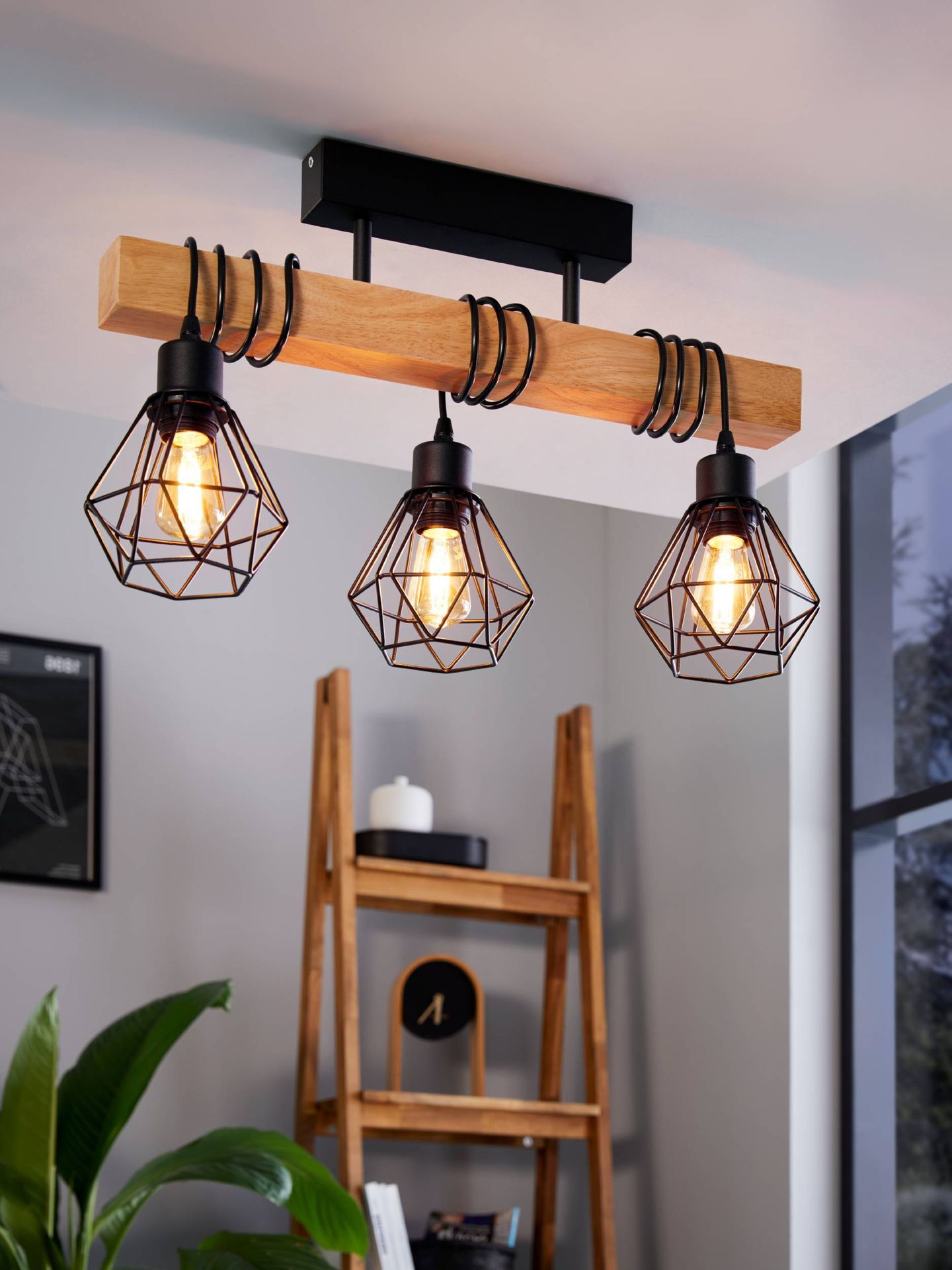 Ein Set beliebter Townshend-Lampen aus schwarzem Metall und Holz in einer natürlichen Farbe. Die Lampen können auch mit smarten LED-Leuchtmitteln ausgestattet werden und so die Intensität und Farbigkeit der Beleuchtung verändern. |
