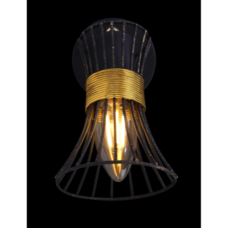 GL-54814-1 Nástěnné svítidlo, kov černý a zlatý, kovové tyče černé a zlaté, vypínač, ?xV: 9x16cm, H: 11cm, bez žárovky 1xE14, max. 40W 230V -