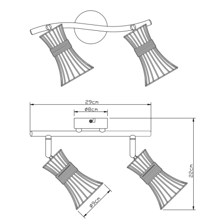 GL-54814-2 Nástěnné svítidlo, kov černý a zlatý, kovové tyče černé a zlaté, DxV: 29x22cm, bez žárovek 2xE14, max. 40W 230V -
