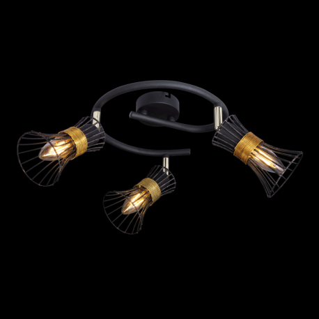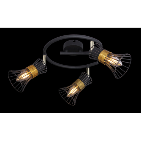 GL-54814-3 Stropní svítidlo, kov černý a zlatý, kovové tyče černé a zlaté, Ø25cm, V:22cm, bez žárovek 3xE14, max. 40W 230V -