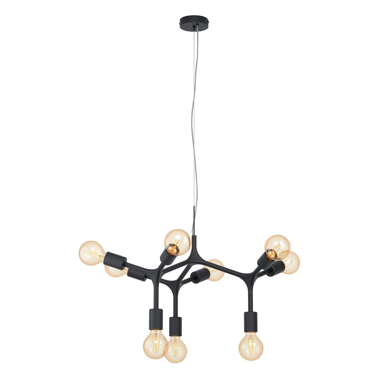 Moderne und stilvolle Kronleuchter aus Stahl in schwarzer Farbe. Ein sehr interessantes Element für Ihr Interieur, insbesondere für Wohnzimmer und Küchen. Sie können mit smarten LED-Leuchtmitteln ausgestattet werden und per Smartphone gedimmt, Farbe und Lichttemperatur verändert werden. |