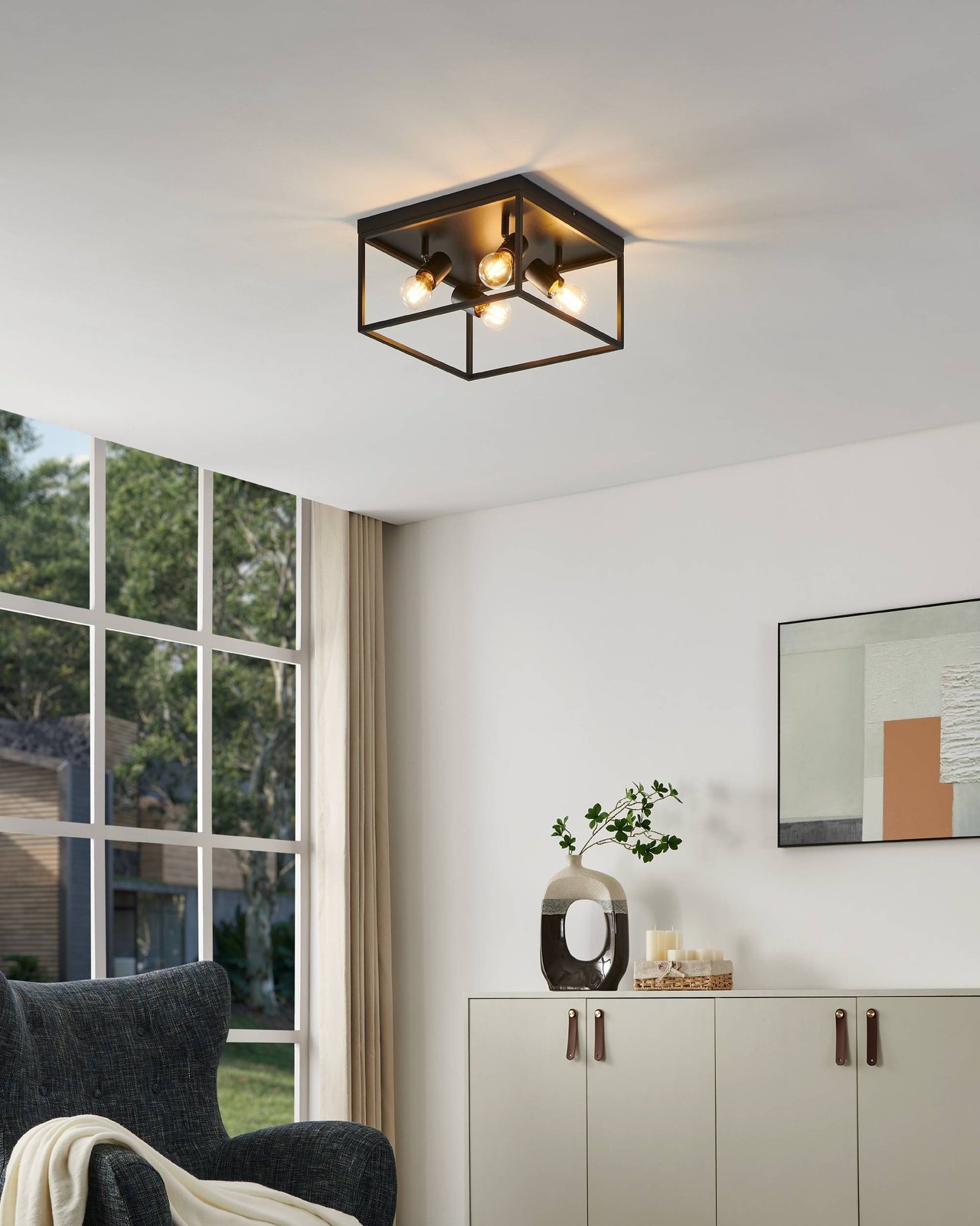 Stilvolle Deckenleuchten aus schwarzem Stahl. Sie eignen sich für Wohnzimmer, Schlafzimmer, Flure und Flure. Die schwarze Farbe verleiht den Lampen Eleganz. |